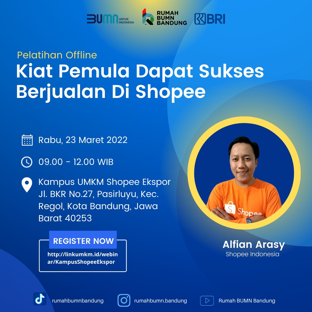 Lagi bingung karena penjualanmu gitu-gitu aja? Sini, mimin kasih tau caranya. Yuk ikutan workshopnya dengan tema ”Kiat Pemula Dapat Sukses Berjualan Di Shopee” bersama kak Alfian Arasy perwakilan dari Shopee Indonesia. Lewat workshop ini, kak Alfian akan membahas seputar permulaan berjualan di shopee lho.