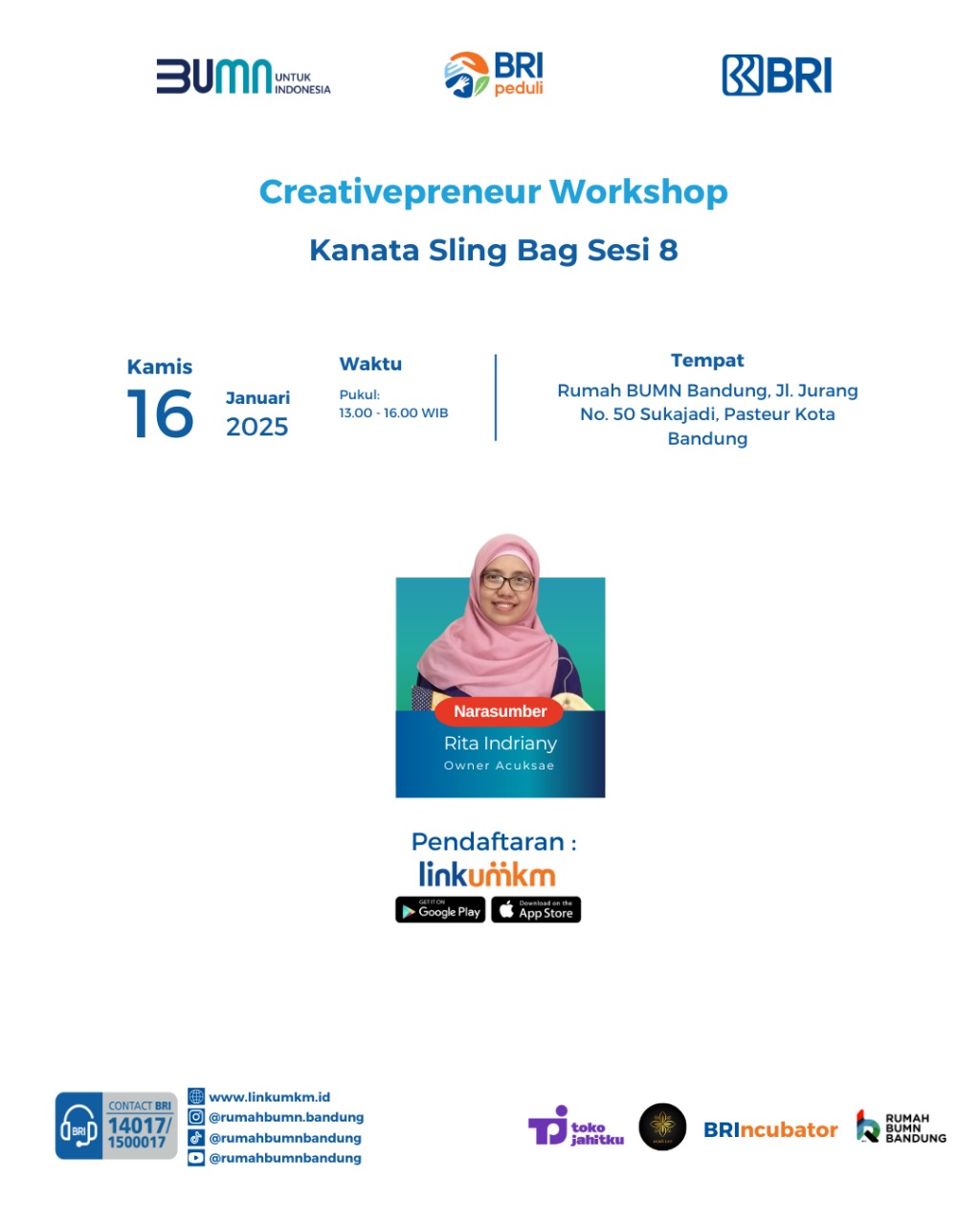 Tempat : Rumah BUMN Bandung, Jl. Jurang No. 50 Sukajadi, Pasteur Kota Bandung