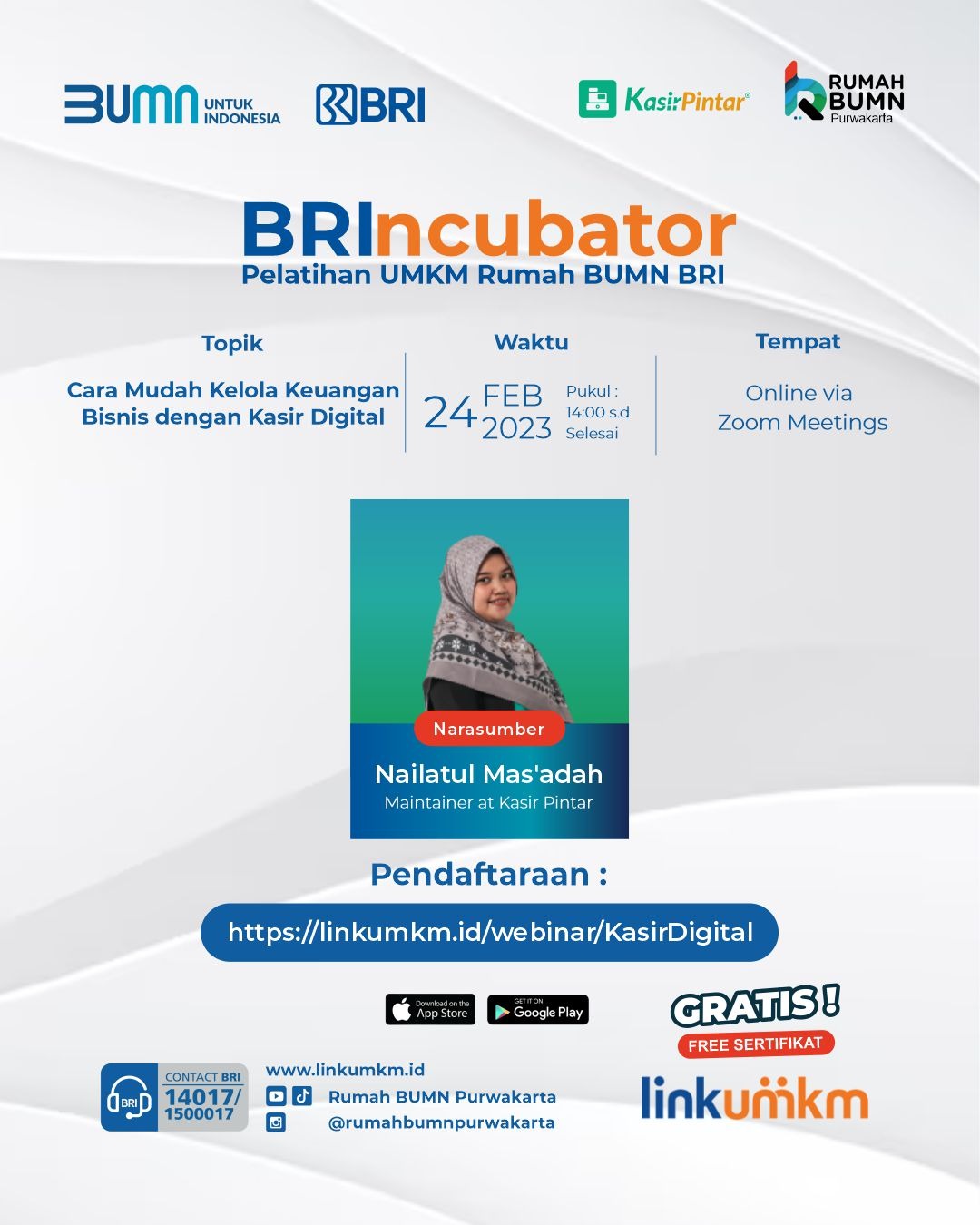 Sobat UMKM, Rumah BUMN Purwakarta Bersama Kasir Pintar mengadakan Pelatihan Secara Online.