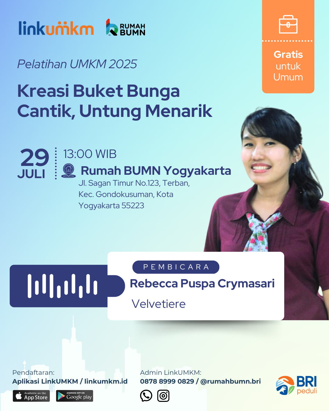 Pelatihan mengenai Kreasi Buket Bunga yang menarik agar UMKM dapat mengkreasikan bunga menjadi buket dan menjadi ide jualan