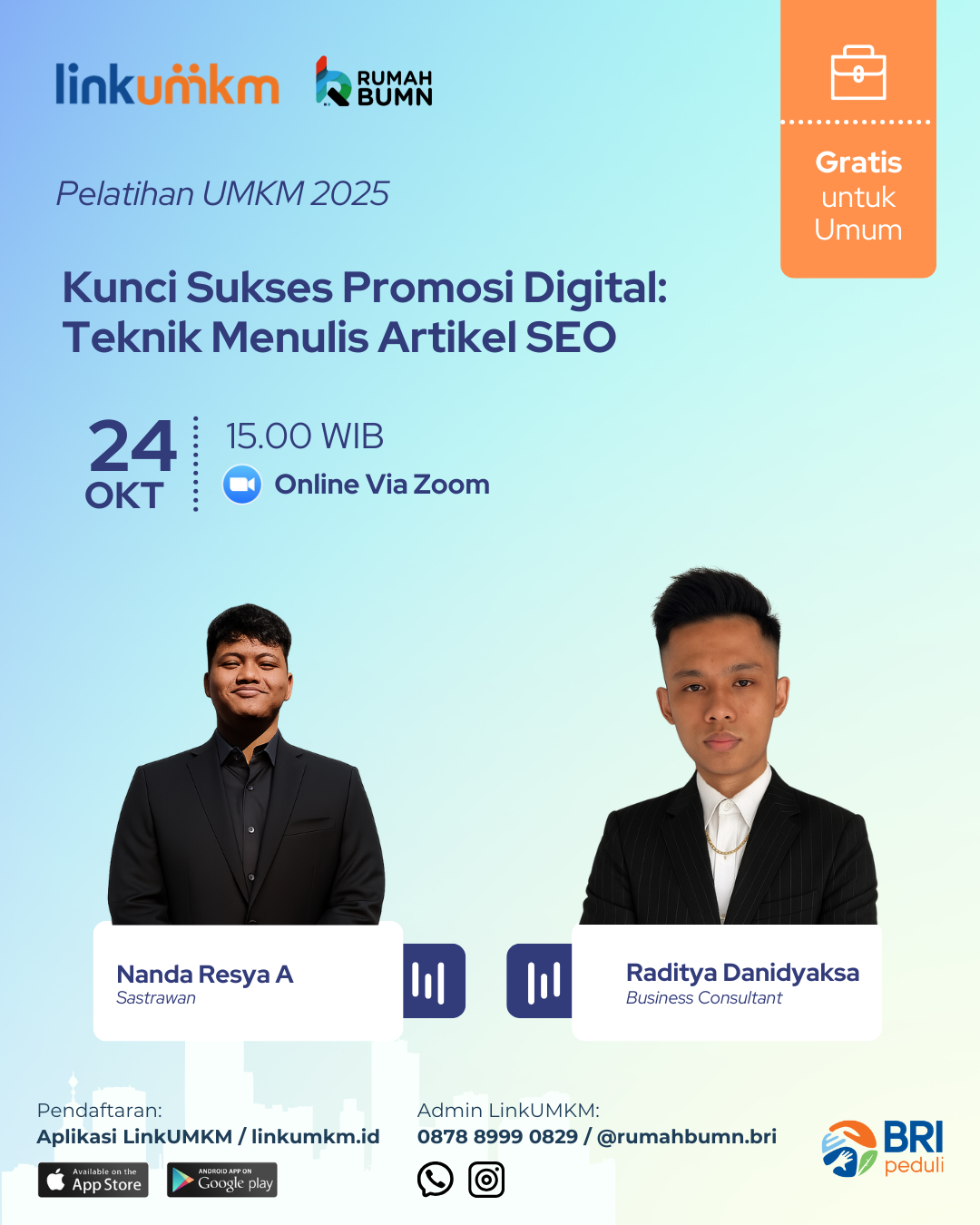 Judul Pelatihan : Literasi Digital Kunci Sukses Promosi Digital Teknik Menulis Artikel SEO
