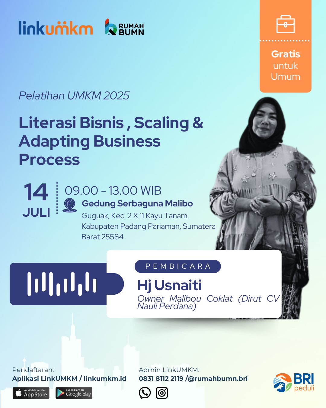 Rumah BUMN Padang Panjang mengadakan Pelatihan Literasi Bisnis Scaling dan Adapting Business Process. Menghadirkan pakar dibidangnya demi kemajuan UMKM Indonesia.