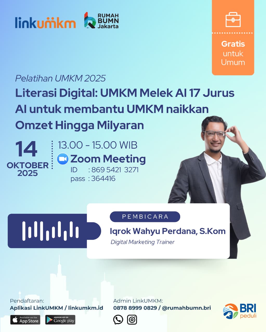 Literasi Digital UMKM Melek AI 17 Jurus AI untuk membantu UMKM naikkan Omzet Hingga Milyaran