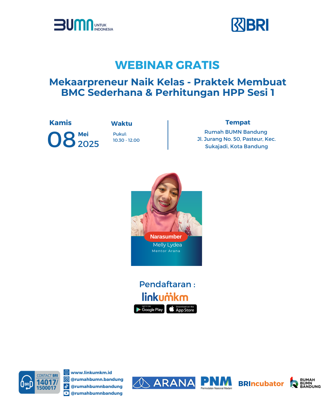 Tempat : Rumah BUMN Bandung Jl. Jurang No.50, Pasteur, Kec. Sukajadi, Kota Bandung