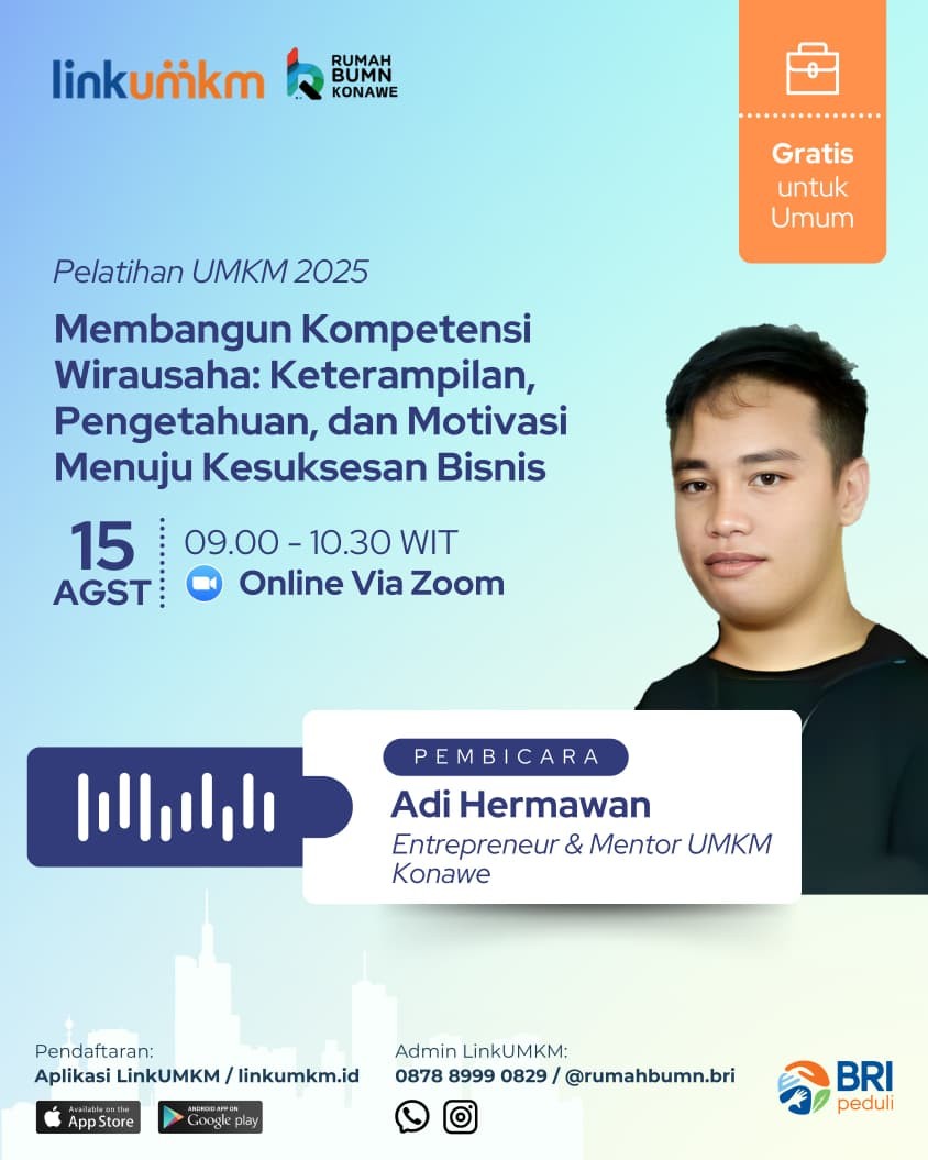Nama Narasumber : Adi Hermawan (Entrepreneur & Mentor UMKM Konawe)