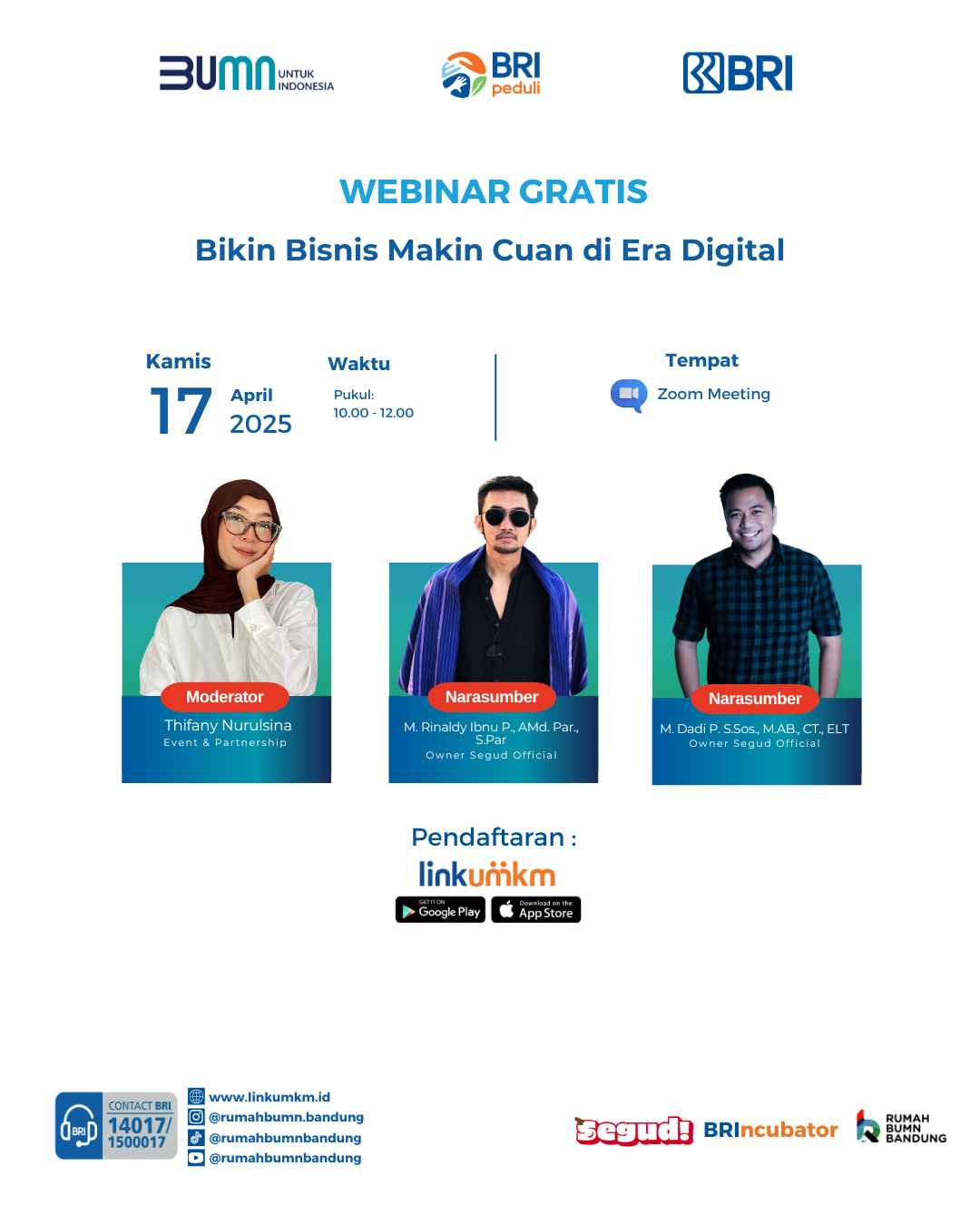Platform Linkumkm (selanjutnya disebut “Platform”) adalah suatu situs jejaring sosial yang digunakan secara online atau menggunakan akses internet yang dibuat dengan tujuan agar membawa UMKM Indonesia naik kelas melalui rangkaian program pemberdayaan terpadu. LinkUMKM merupakan platform yang diselenggarakan oleh BRI Research Institute (BRIRINS) yang bekerjasama dengan PT Bank Rakyat Indonesia (Persero) Tbk. (selanjutnya disebut “Kami”) untuk mendukung pengembangan UMKM.