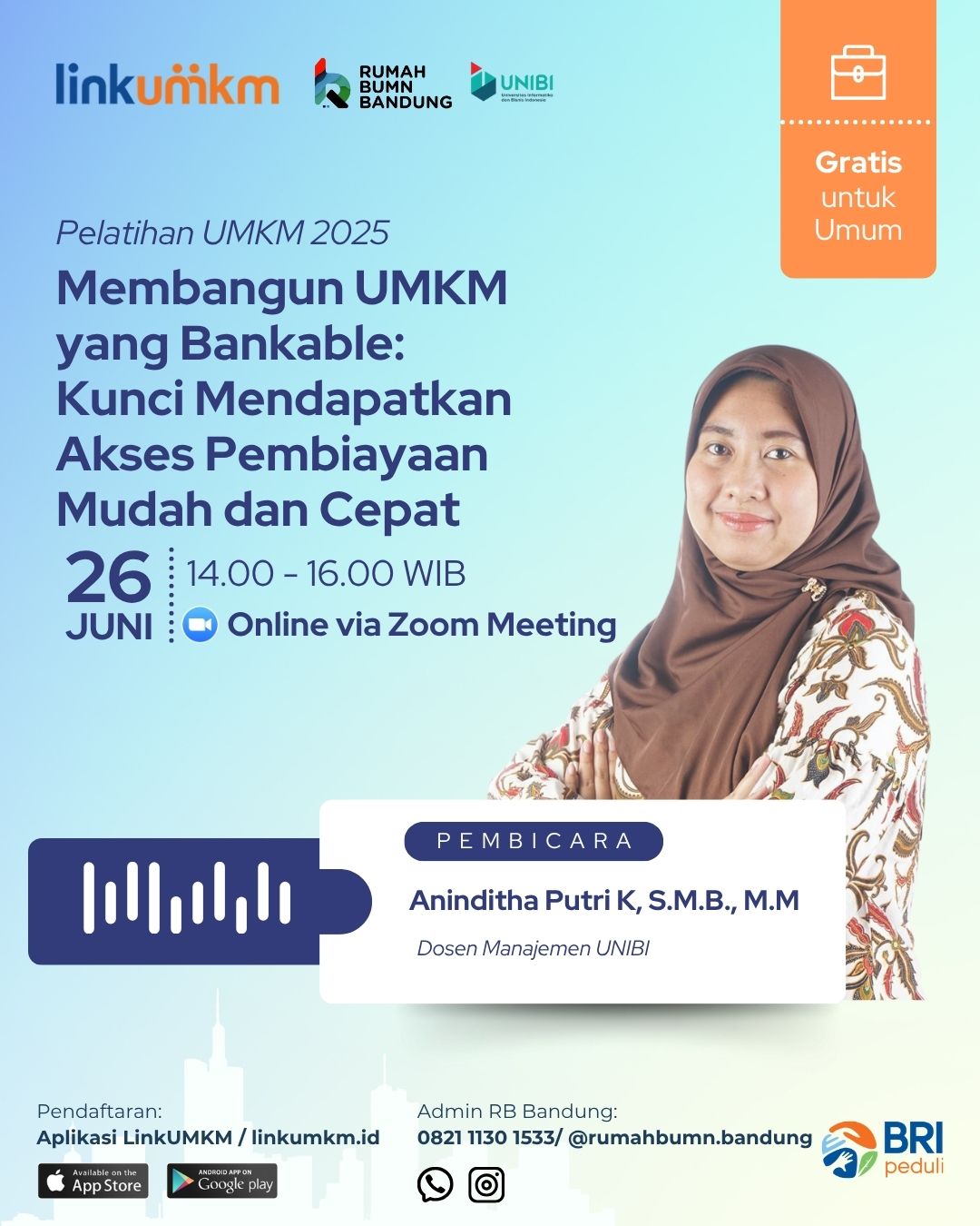 Nama Narasumber : Membangun UMKM yang Bankable Kunci Mendapatkan Akses Pembiayaan Mudah dan Cepat