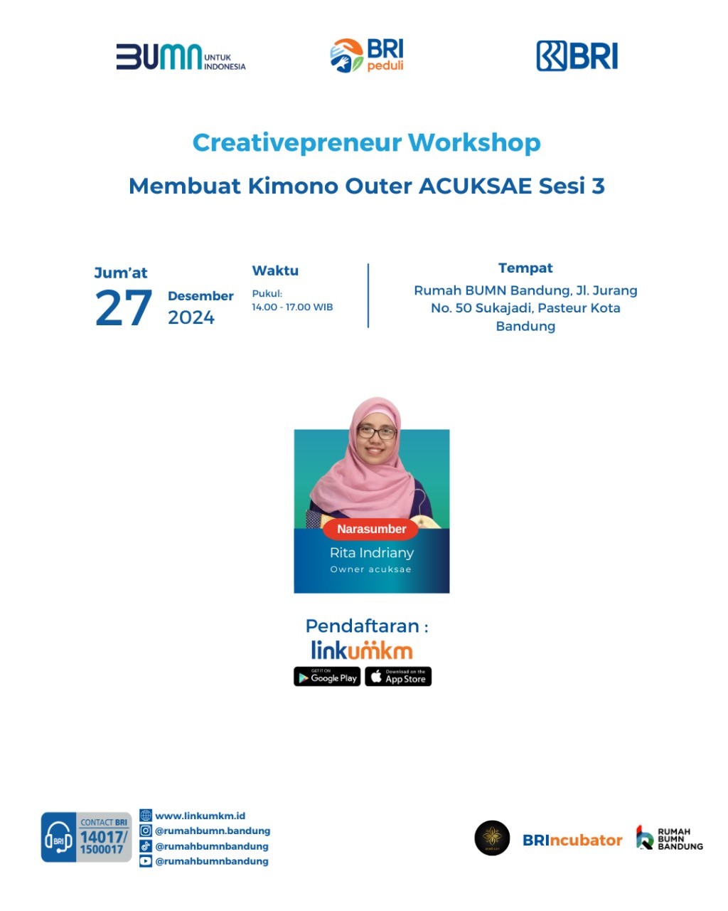 Tempat : Rumah BUMN Bandung, JL. Jurang No. 50 Sukajadi, Pasteur Kota Bandung
