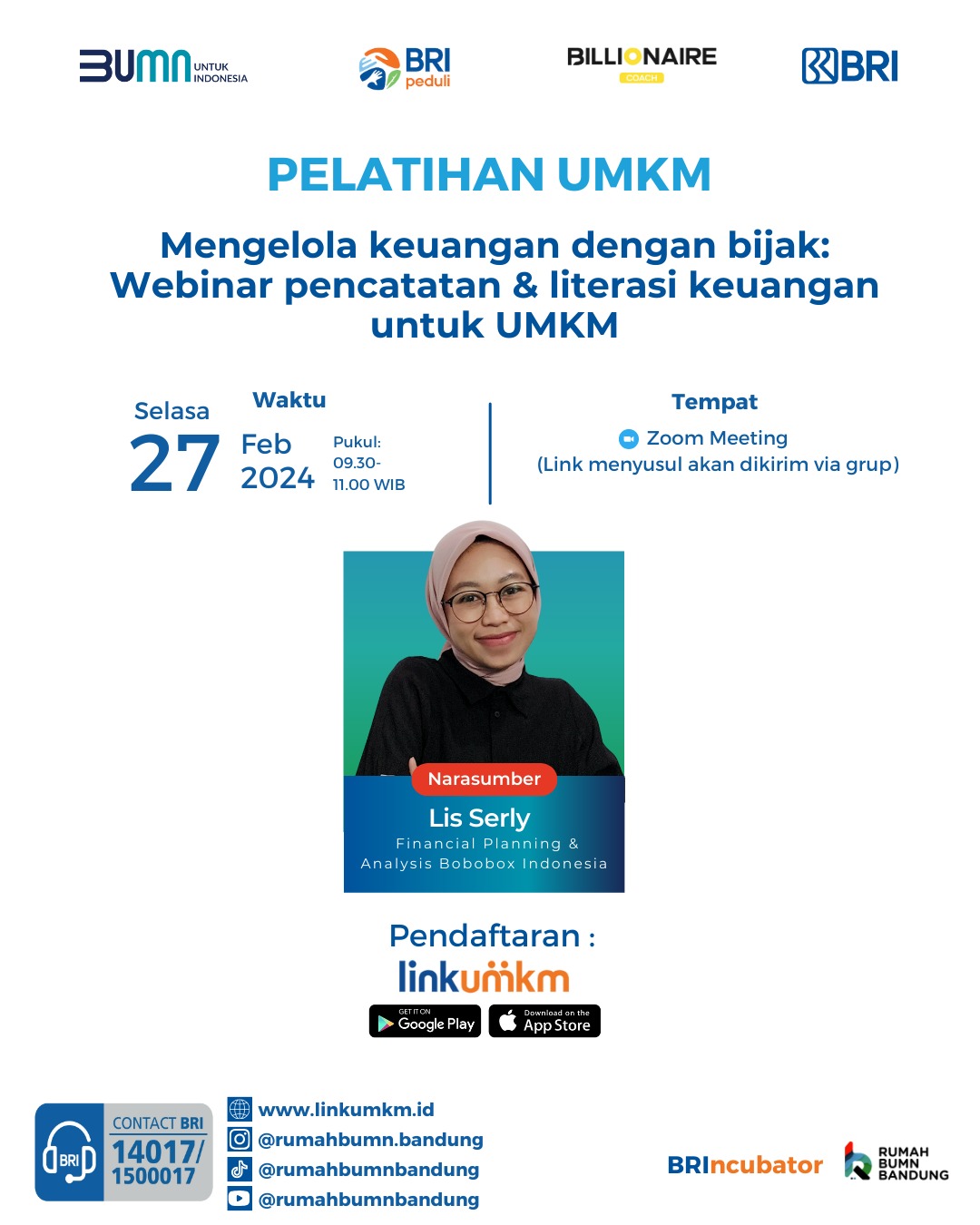 Nah kalian wajib banget ikutan pelatihan Mengelola Keuangan dengan Bijak: Webinar Pencatatan & aliterasi Keuangan untuk UMKM yang dilaksanakan oleh Rumah BUMN Bandung bersama teh Lis Serly