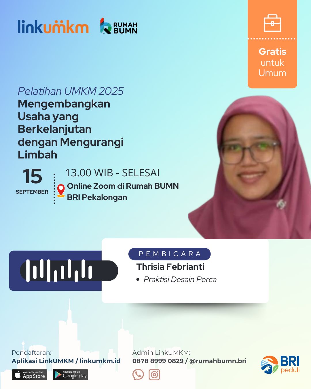 Tempat : Online Zoom (Rumah BUMN BRI Pekalongan)