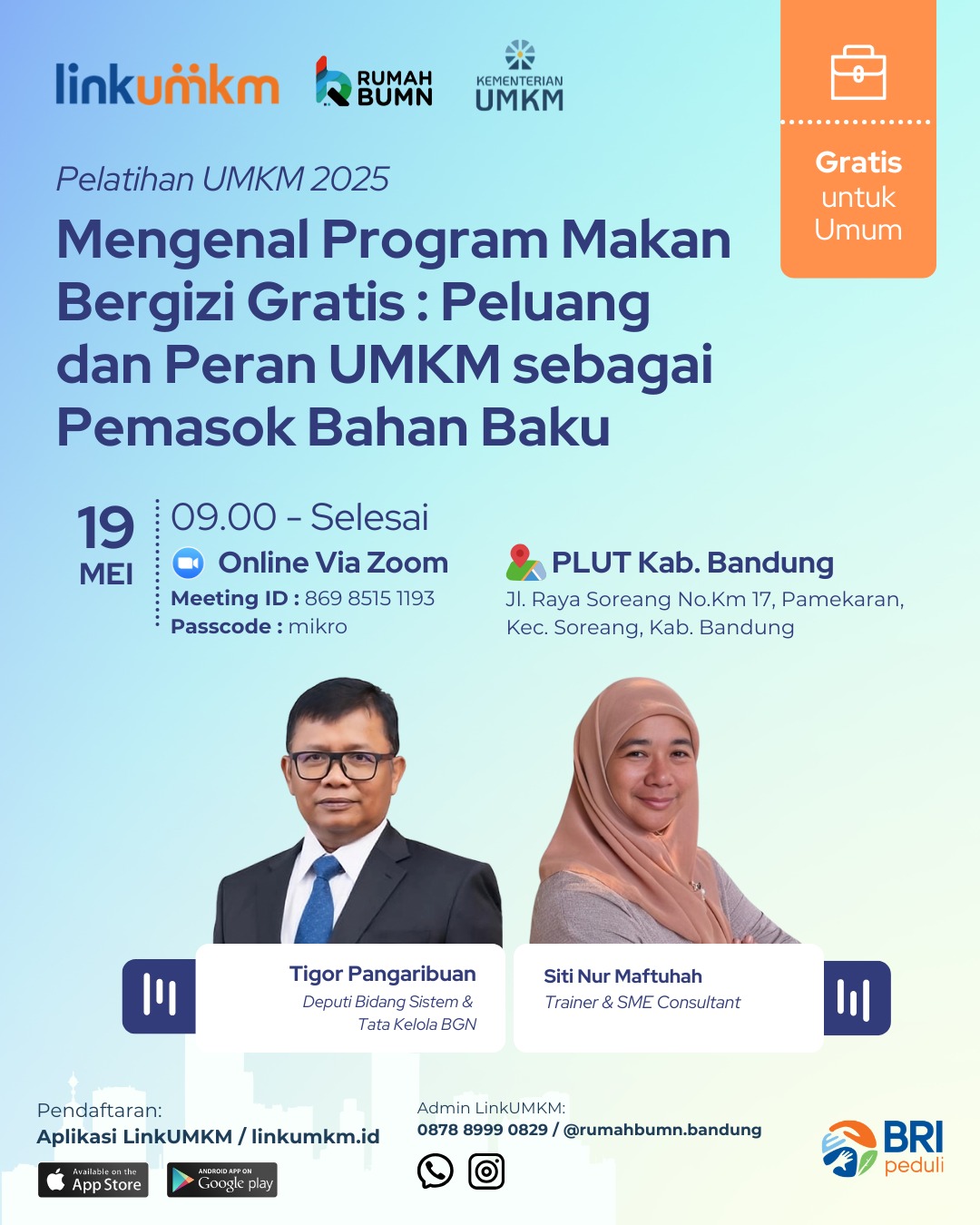 Judul Pelatihan : Mengenal Program Makan Bergizi Gratis Peluang dan Peran UMKM sebagai Pemasok Bahan Baku