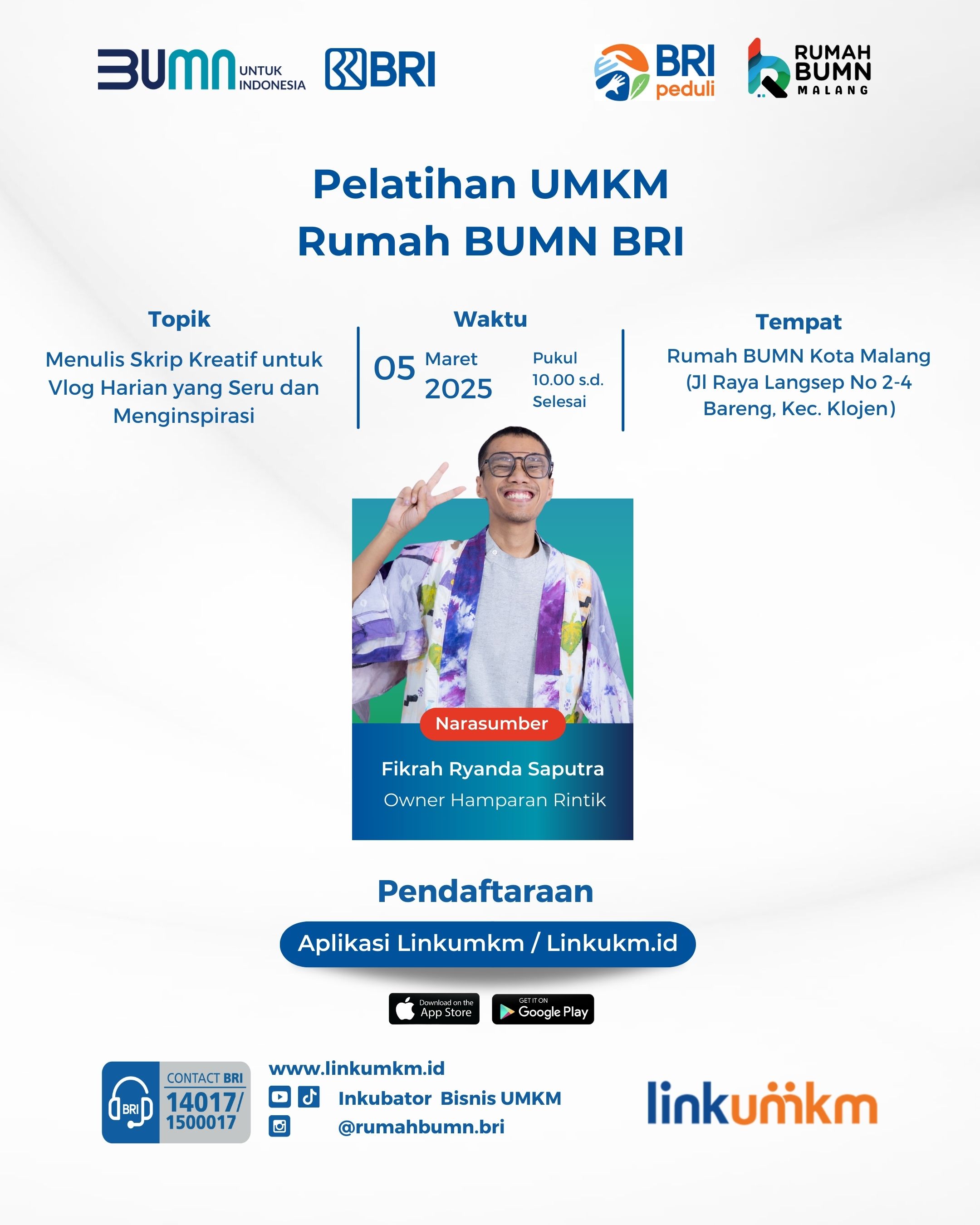 Judul Pelatihan : Menulis Skrip Kreatif untuk Vlog Harian yang Seru dan Menginspirasi
