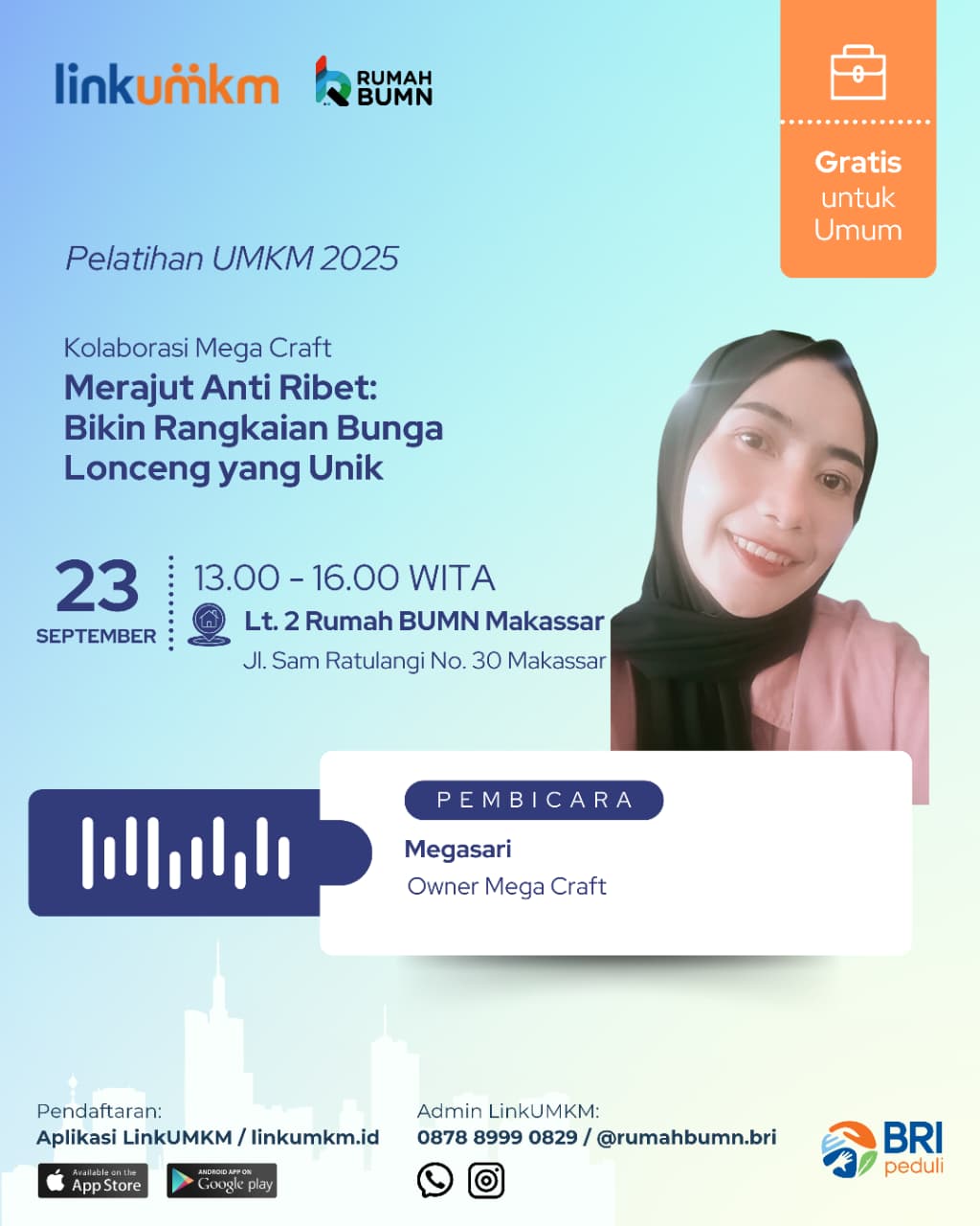 Tempat:Jl.Sam Ratulangi No.30 (Lt. 2 Rumah BUMN Makassar)