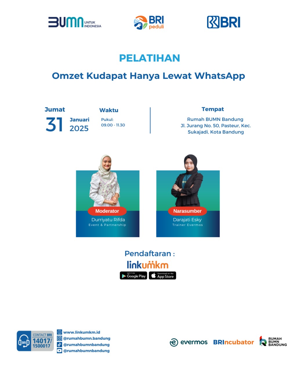 Tempat : Rumah BUMN Bandung, JL. Jurang No. 50 Sukajadi, Pasteur Kota Bandung