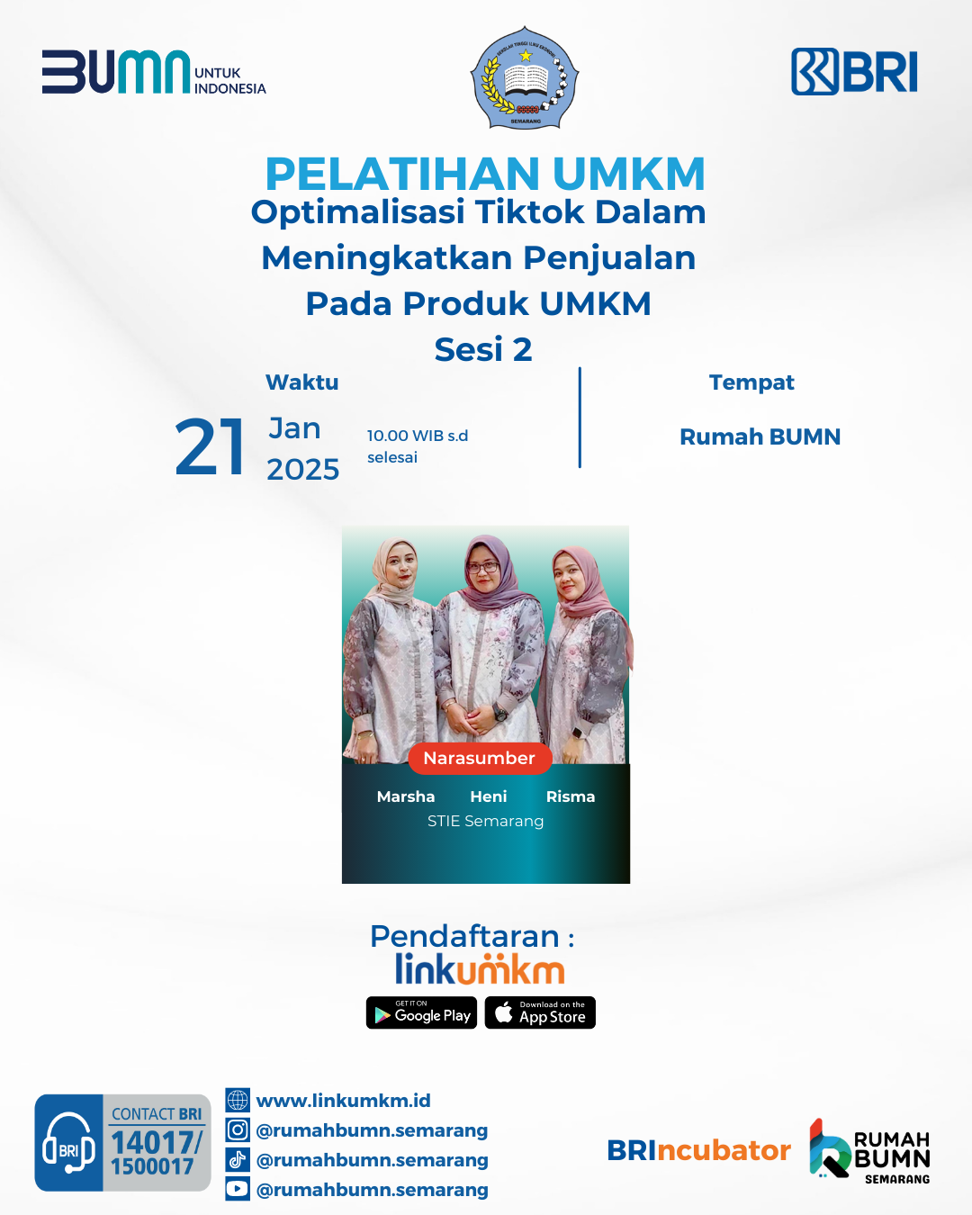 Judul Pelatihan : Optimalisasi Tiktok Dalam Meningkatkan Penjualan Pada Produk UMKM Sesi 2