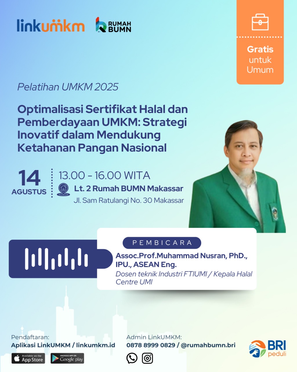Tema Pelatihan: Optimalisasi Sertifikat Halal dan Pemberdayaan UMKM: Strategi Inovatif dalam Mendukung Ketahanan Pangan Nasional