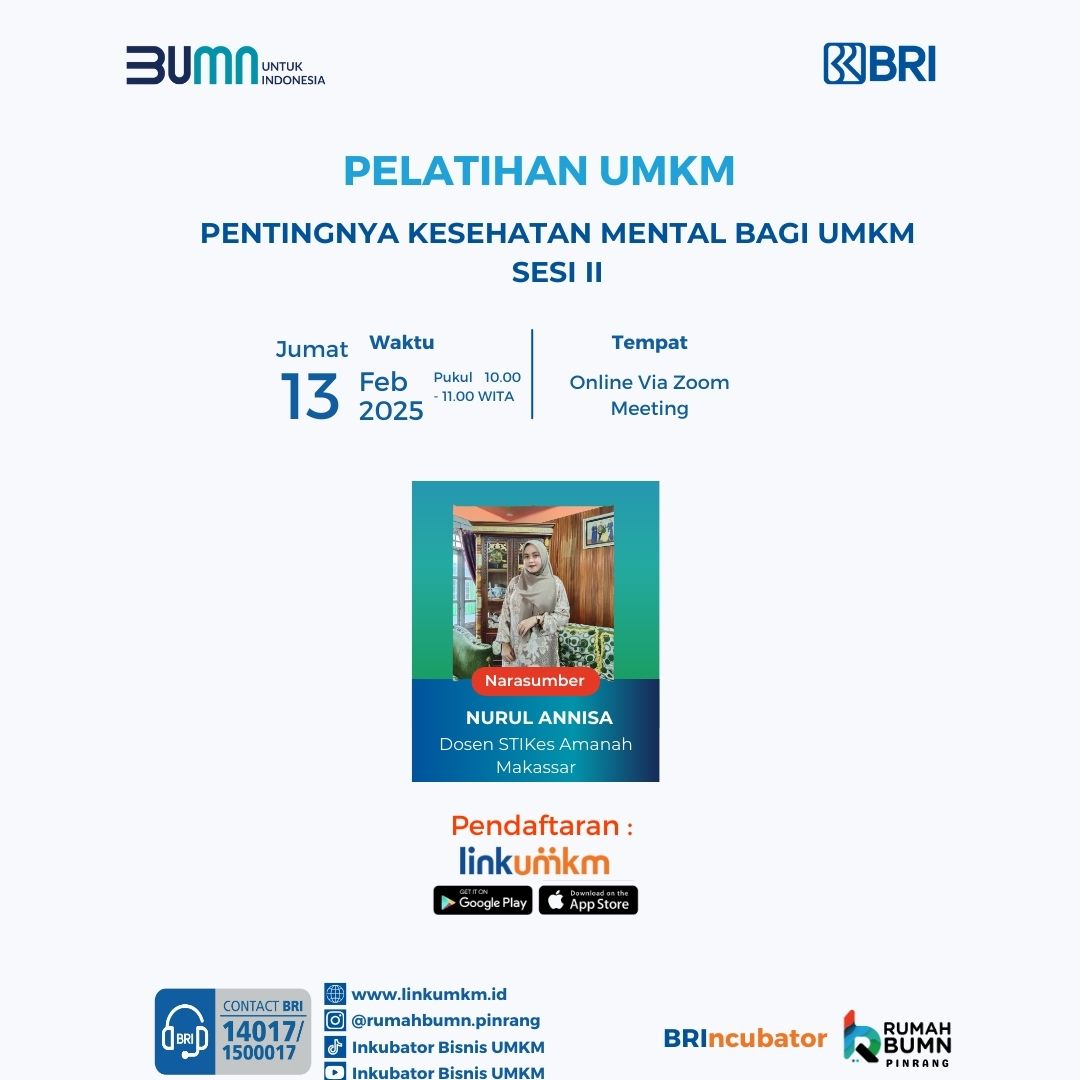 PELATIHAN UMKM "PENTINGNYA KESEHATAN MENTAL BAGI UMKM SESI II"