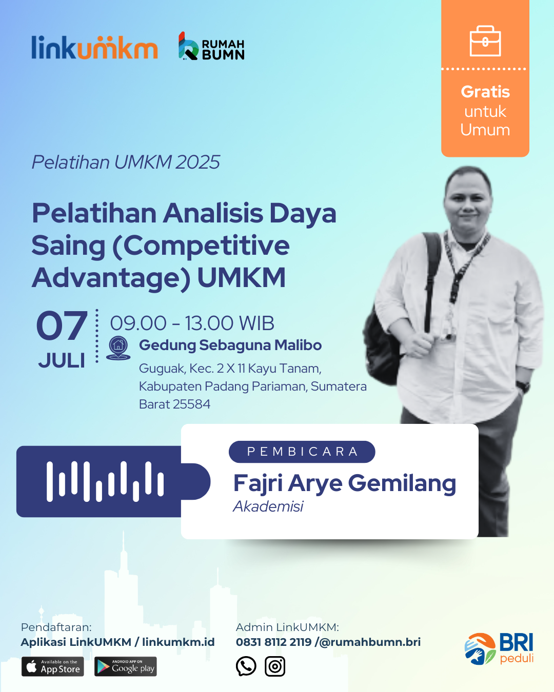 Rumah BUMN Padang Panjang mengadakan Pelatihan Analisis Daya Saing Competitive Advantage UMKM. Menghadirkan pakar dibidangnya demi kemajuan UMKM Indonesia.
