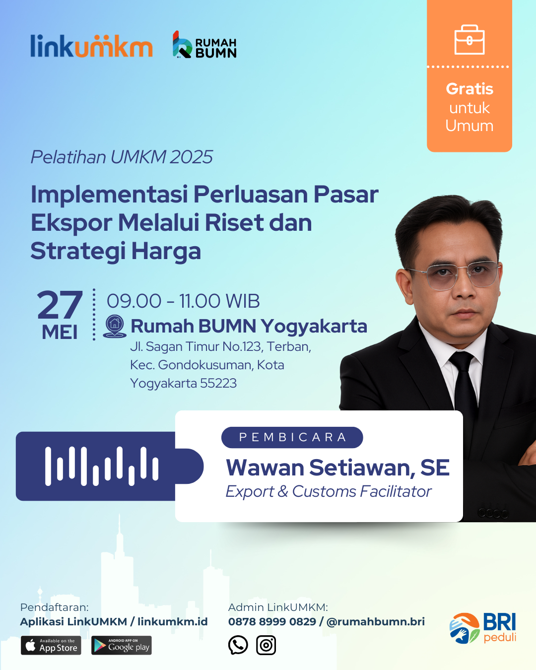 Platform Linkumkm (selanjutnya disebut “Platform”) adalah suatu situs jejaring sosial yang digunakan secara online atau menggunakan akses internet yang dibuat dengan tujuan agar membawa UMKM Indonesia naik kelas melalui rangkaian program pemberdayaan terpadu. LinkUMKM merupakan platform yang diselenggarakan oleh BRI Research Institute (BRIRINS) yang bekerjasama dengan PT Bank Rakyat Indonesia (Persero) Tbk. (selanjutnya disebut “Kami”) untuk mendukung pengembangan UMKM.