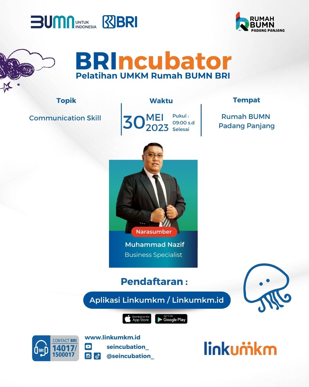 Rumah BUMN Padang Panjang mengadakan Pelatihan Communication Skill BRIncubator. Menghadirkan pakar dibidangnya demi kemajuan UMKM Indonesia.