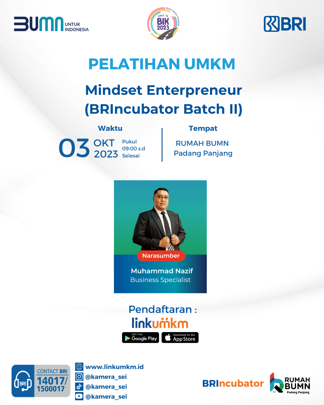 Rumah BUMN Padang Panjang mengadakan Pelatihan Mindset Enterpreneur BRIncubator BatchII Kelas A. Menghadirkan pakar dibidangnya demi kemajuan UMKM Indonesia.