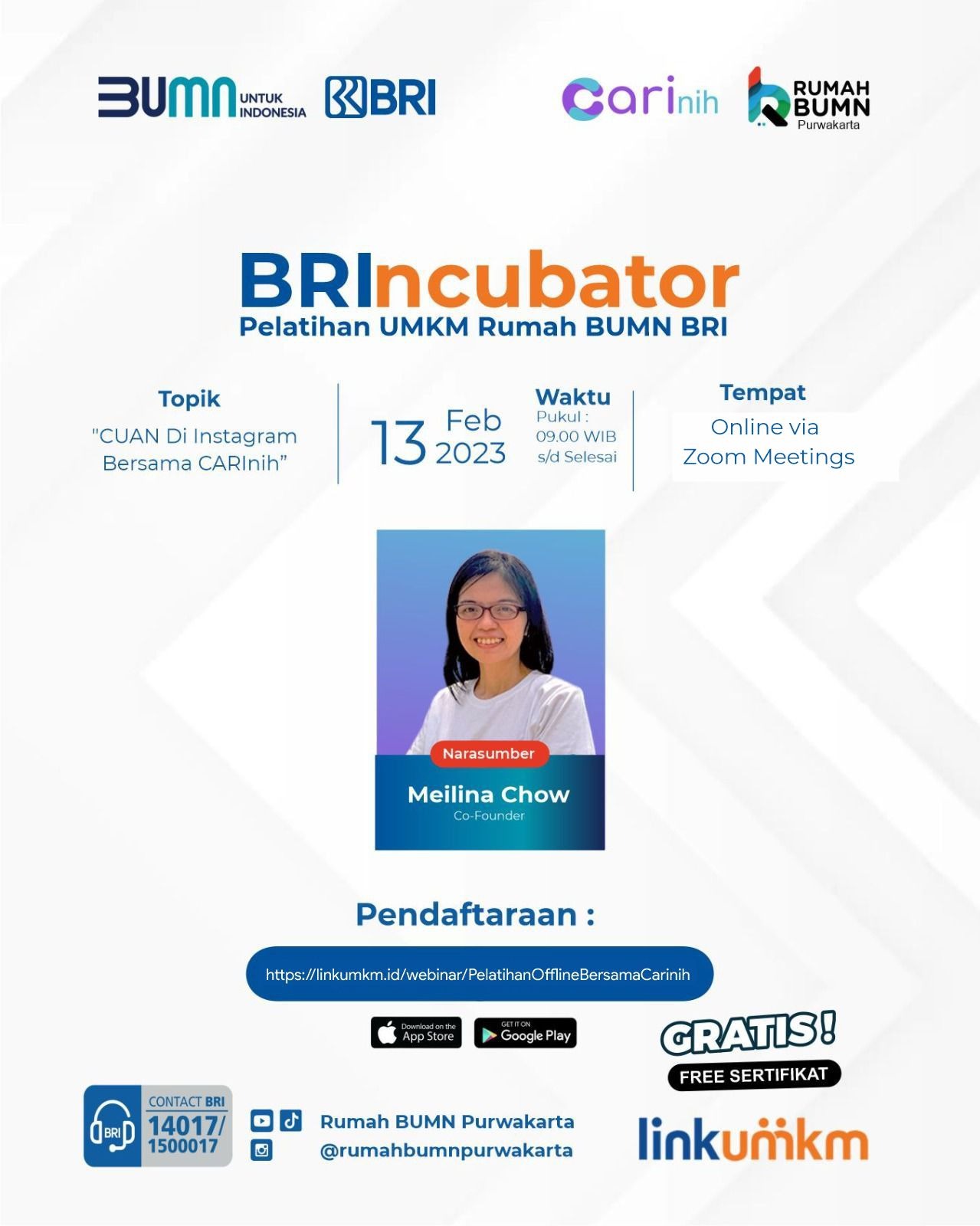 Sobat UMKM, Rumah BUMN Purwakarta bersama CARinih mengadakan Pelatihan Secara Online.
