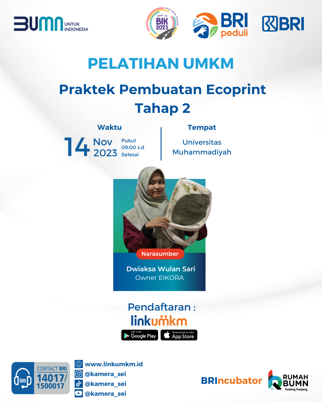 Rumah BUMN Padang Panjang mengadakan Pelatihan Praktek Ecoprint Tahap 2. Menghadirkan pakar dibidangnya demi kemajuan UMKM Indonesia.