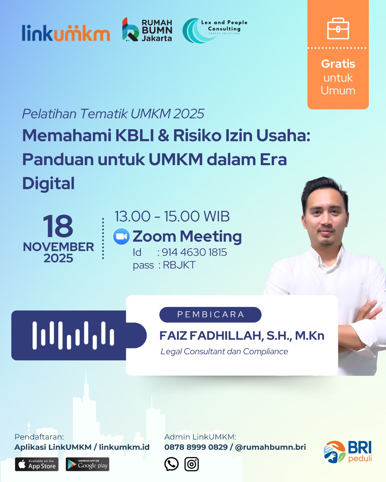 Narasumber Faiz Fadhillah S.H., M.Kn - Legal Consultant and Compliance