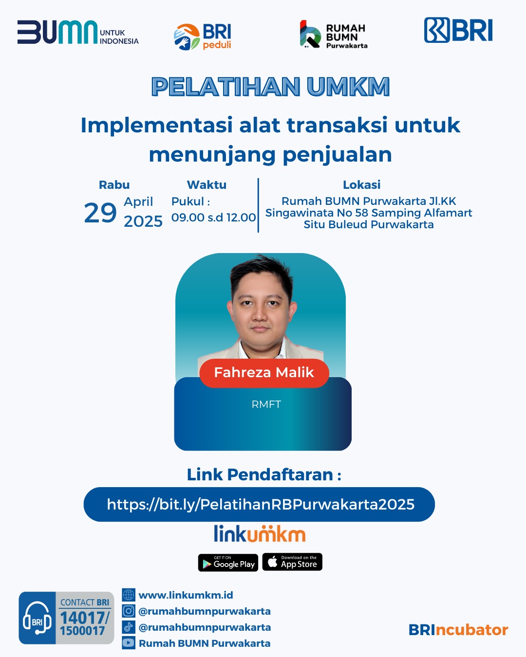 Sobat UMKM, Rumah BUMN Purwakarta mengadakan Pelatihan Secara Offline.