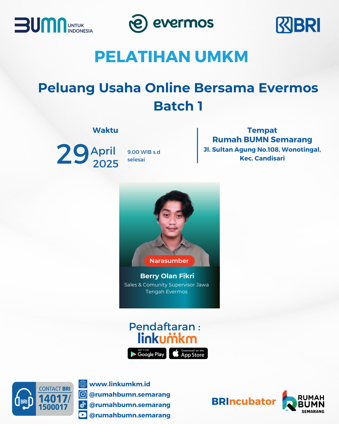Judul Pelatihan : Peluang Usaha Online Bersama Evermos Batch 1