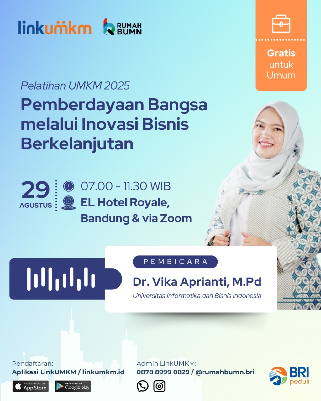 Kegiatan ini bertujuan mendorong lahirnya gagasan dan praktik bisnis yang tidak hanya berorientasi pada keuntungan ekonomi, tetapi juga memperhatikan aspek sosial dan lingkungan. Melalui seminar, diskusi, serta kolaborasi lintas sektor, kegiatan ini menjadi ruang bagi generasi muda, pelaku usaha, dan pemangku kebijakan untuk merancang inovasi yang mampu memberdayakan masyarakat sekaligus menjaga keberlanjutan sumber daya.