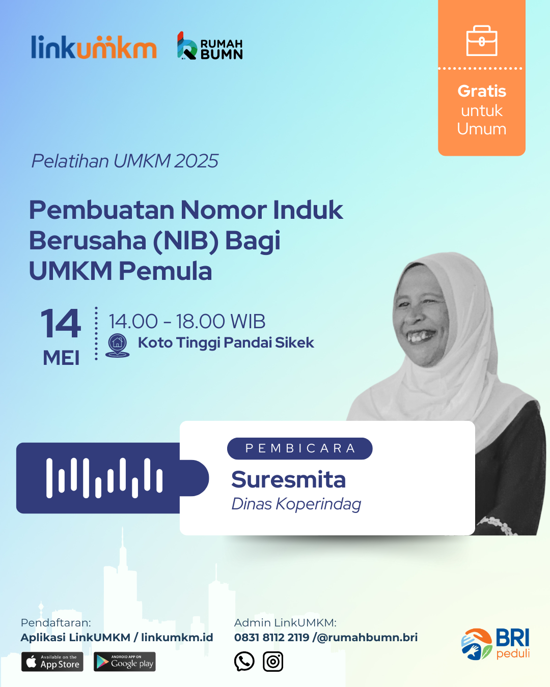 Rumah BUMN Padang Panjang mengadakan Pelatihan Pembuatan Nomor Induk Berusaha NIB Bagi UMKM Pemula. Menghadirkan pakar dibidangnya demi kemajuan UMKM Indonesia.