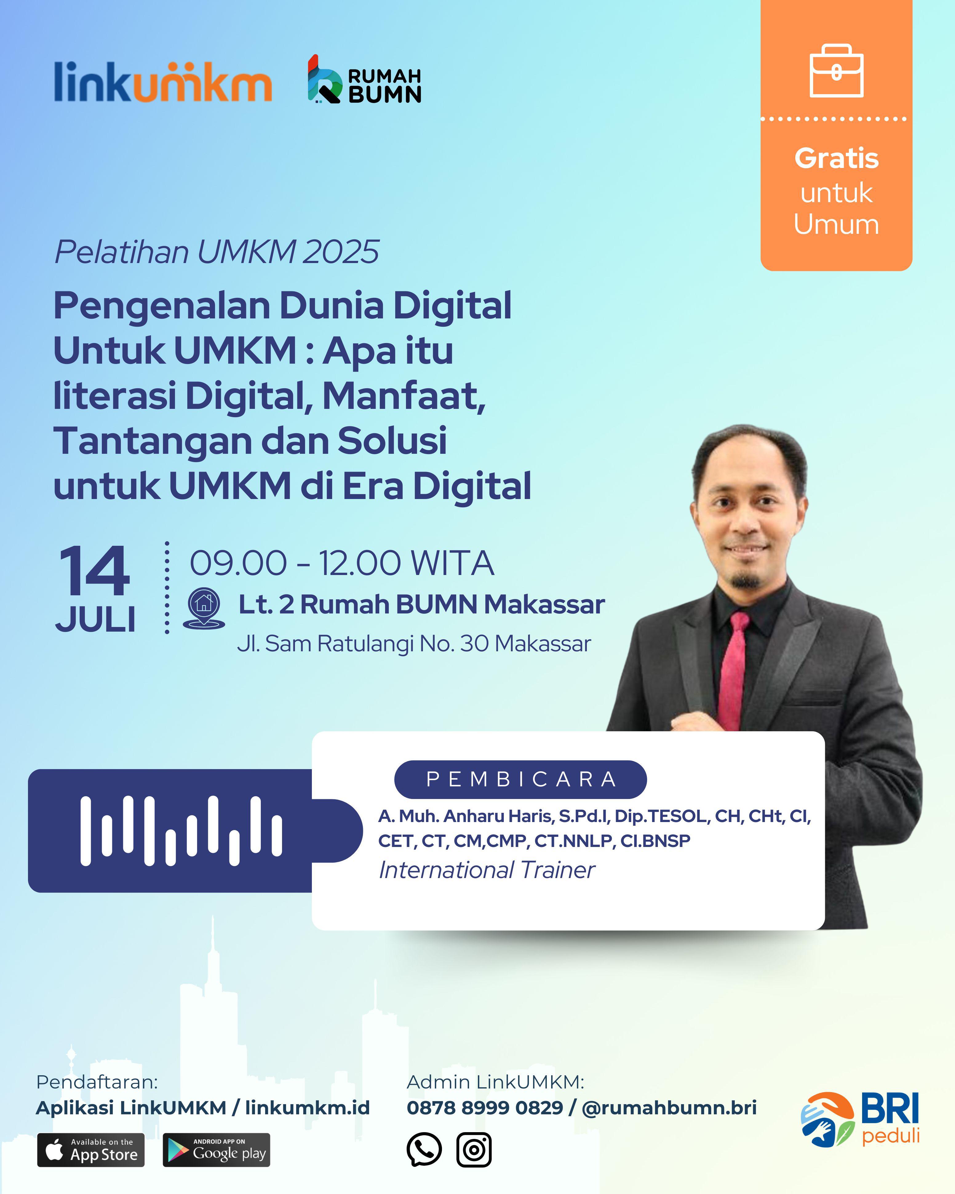Tema Pelatihan: Pengenalan Dunia Digital untuk UMKM Apa itu Literasi Digital Manfaat Tantangan dan Solusi untuk UMKM di Era Digital.