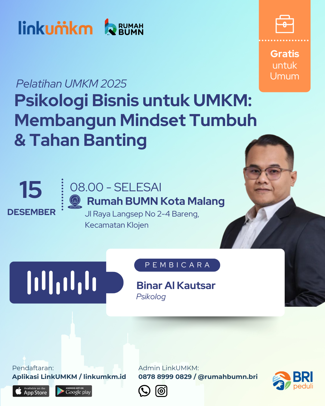 Kegiatan : Psikologi Bisnis untuk UMKM Membangun Mindset Tumbuh & Tahan Banting