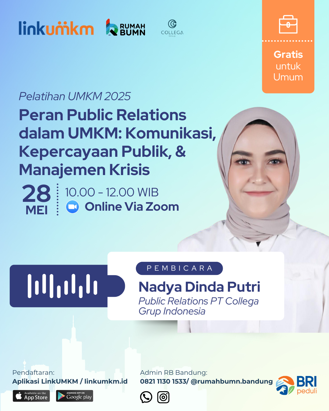Judul Pelatihan : Peran Public Relations dalam UMKM: Komunikasi, Kepercayaan Publik, dan Manjemen Krisis