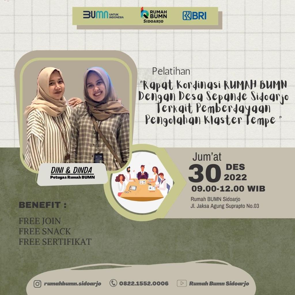 LinkUMKM RAPAT KORDINASI RUMAH BUMN DENGAN DESA SEPANDE SIDOARJO TERKAIT PEMBERDAYAAN PENGOLAHAN KLASTER TEMPE