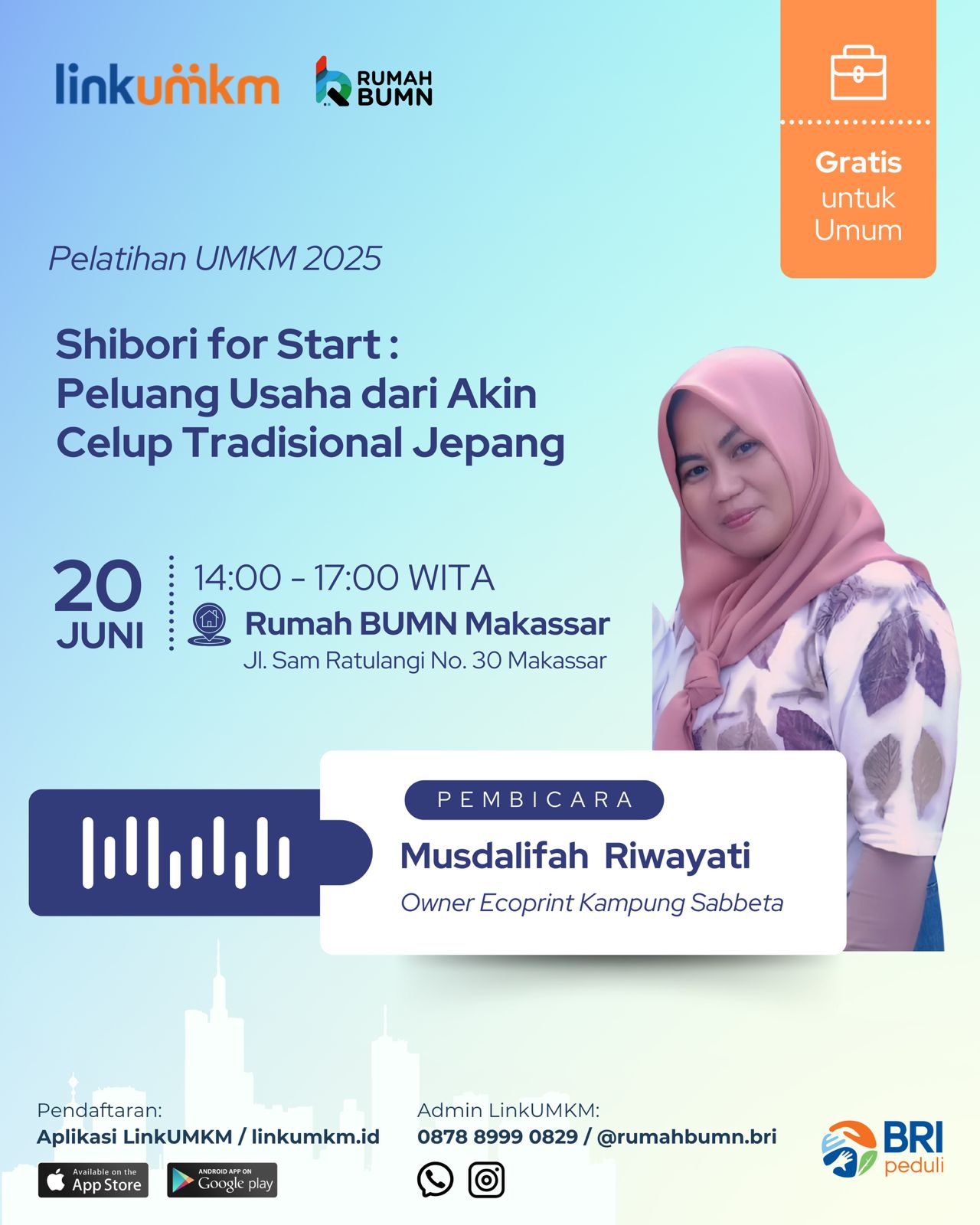 Tema Pelatihan: Shibori for Start Peluang Usaha dari Akin Celup Tradisional Jepang.