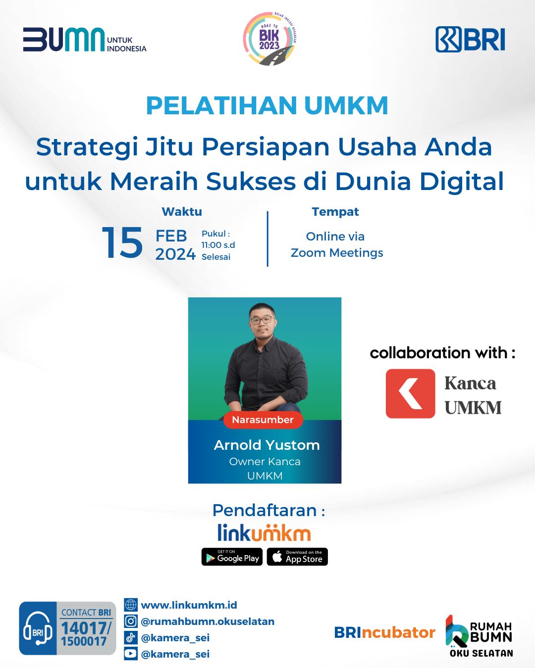 Tentunya pemateri pelatihan kali ini adalah Mas Arnold Yustom Owner Kanca UMKM yang sudah sangat baik didalam Strategi Sukses di Dunia Digital
