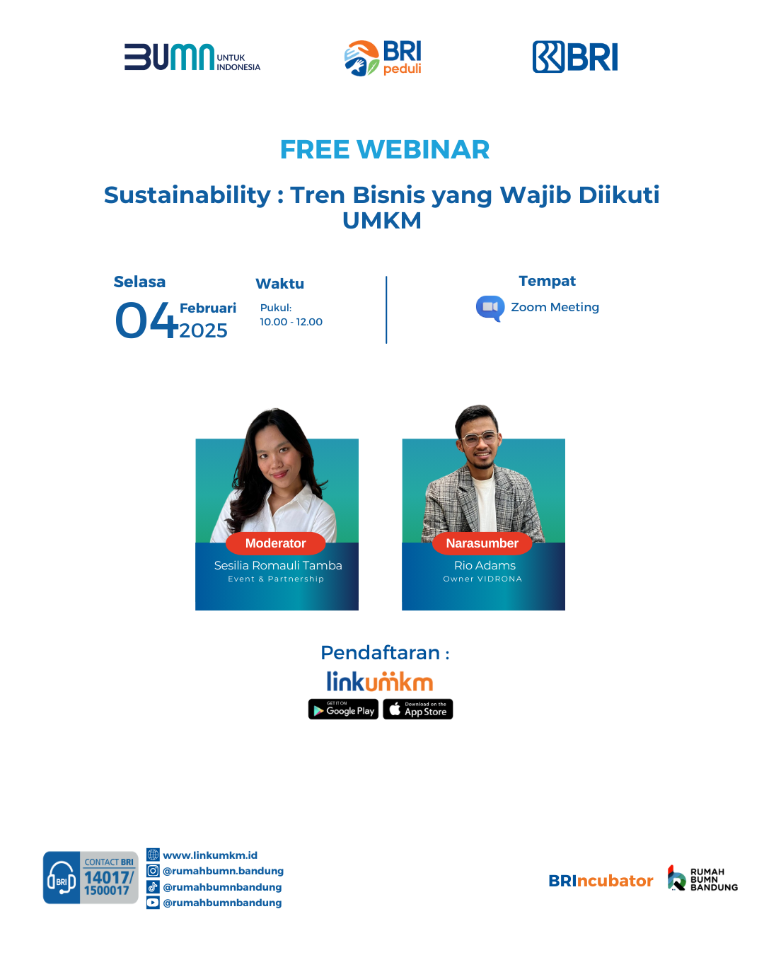 Platform Linkumkm (selanjutnya disebut “Platform”) adalah suatu situs jejaring sosial yang digunakan secara online atau menggunakan akses internet yang dibuat dengan tujuan agar membawa UMKM Indonesia naik kelas melalui rangkaian program pemberdayaan terpadu. LinkUMKM merupakan platform yang diselenggarakan oleh BRI Research Institute (BRIRINS) yang bekerjasama dengan PT Bank Rakyat Indonesia (Persero) Tbk. (selanjutnya disebut “Kami”) untuk mendukung pengembangan UMKM.