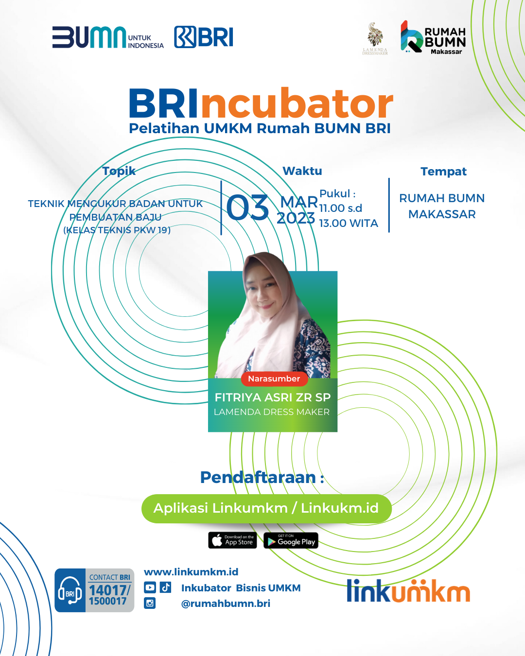 Ruham BUMN Makassar berkolaborasi dengan komunitas Jarum Benang dan Mikrochaprter Makassar akan melangsungkan kegiatan pelatihan dengan tema "TEKNIK MENGUKUR BADAN UNTUK MEMBUAT BAJU PKW 19". diharapkan output pelatihan ini akan meningkatkan skill/keterampilan agar dapat membantu meningkatkan kesejahteraan rumah tangga