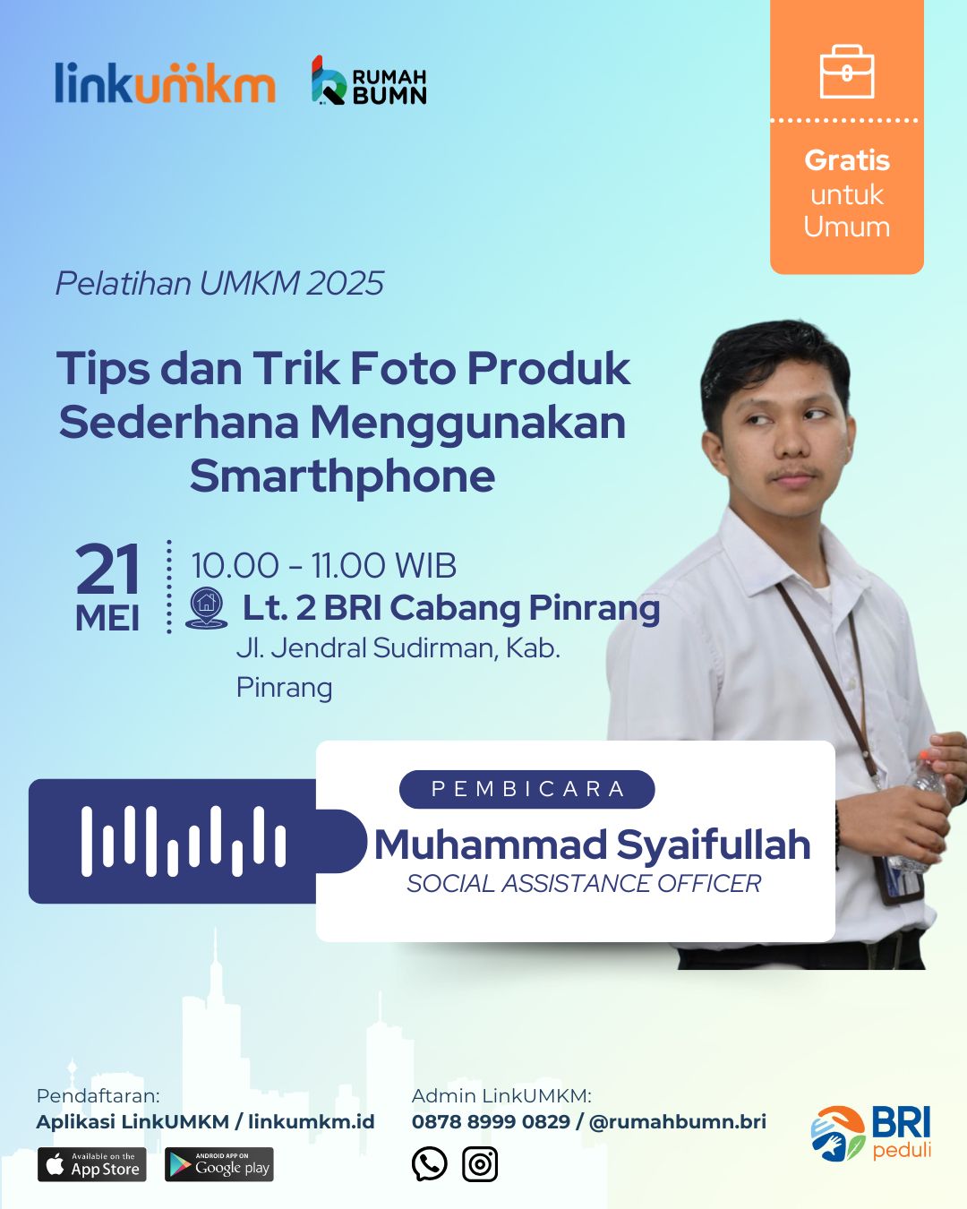 Tempat: Gedung Lantai 2 BRI Cabang Pinrang