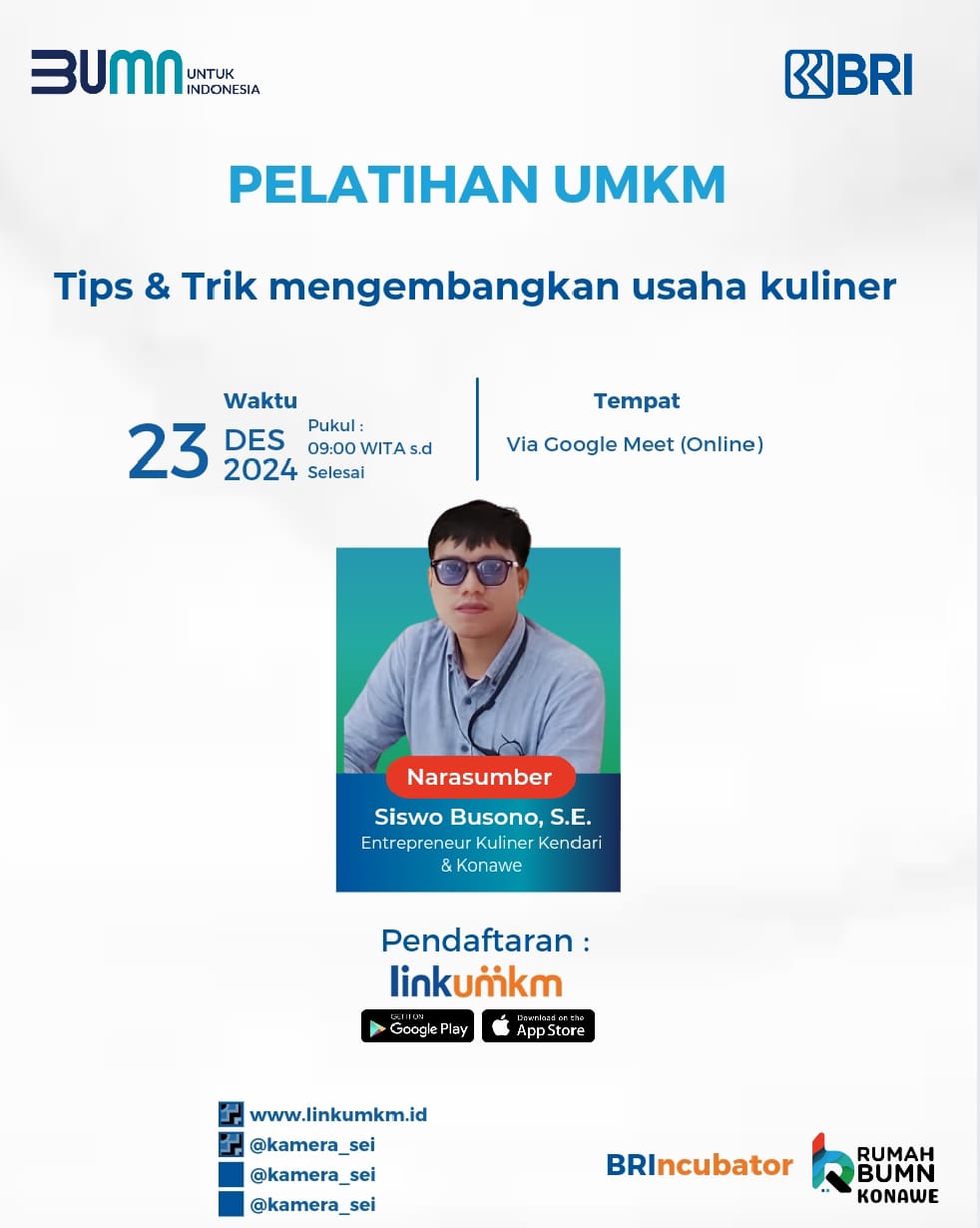 Judul Pelatihan : Tips & Trik Mengembangkan Usaha Kuliner