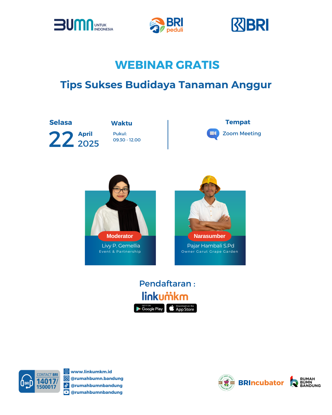 Platform Linkumkm (selanjutnya disebut “Platform”) adalah suatu situs jejaring sosial yang digunakan secara online atau menggunakan akses internet yang dibuat dengan tujuan agar membawa UMKM Indonesia naik kelas melalui rangkaian program pemberdayaan terpadu. LinkUMKM merupakan platform yang diselenggarakan oleh BRI Research Institute (BRIRINS) yang bekerjasama dengan PT Bank Rakyat Indonesia (Persero) Tbk. (selanjutnya disebut “Kami”) untuk mendukung pengembangan UMKM.