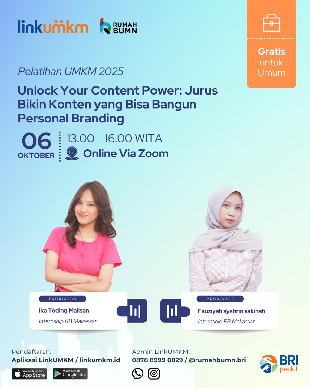 Tema Pelatihan: Unlock Your Konten Power : Jurus Bikin Konten Yang Bisa Bangun Personal Branding