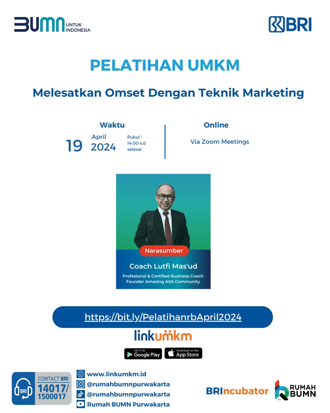Sobat UMKM, Rumah BUMN Purwakarta mengadakan Pelatihan Secara Online.