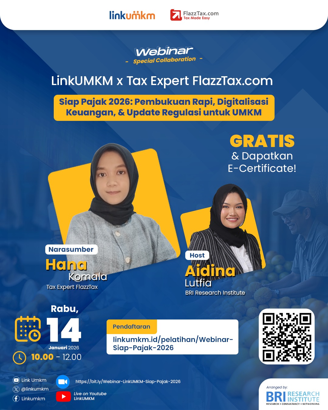 Webinar Spesial Kolaborasi LinkUMKM x Tax Expert FlazzTax.com:Siap Pajak 2026: Pembukuan Rapi, Digitalisasi Keuangan, & Update Regulasi untuk UMKM