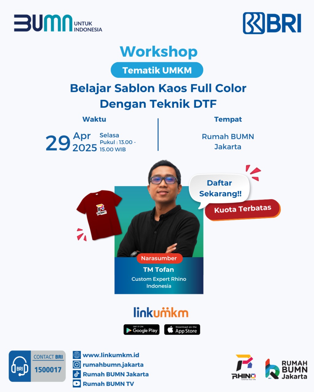 Judul, Workshop Tematik UMKM, Belajar Sablon Kaos Full Color Dengan Teknik DTF