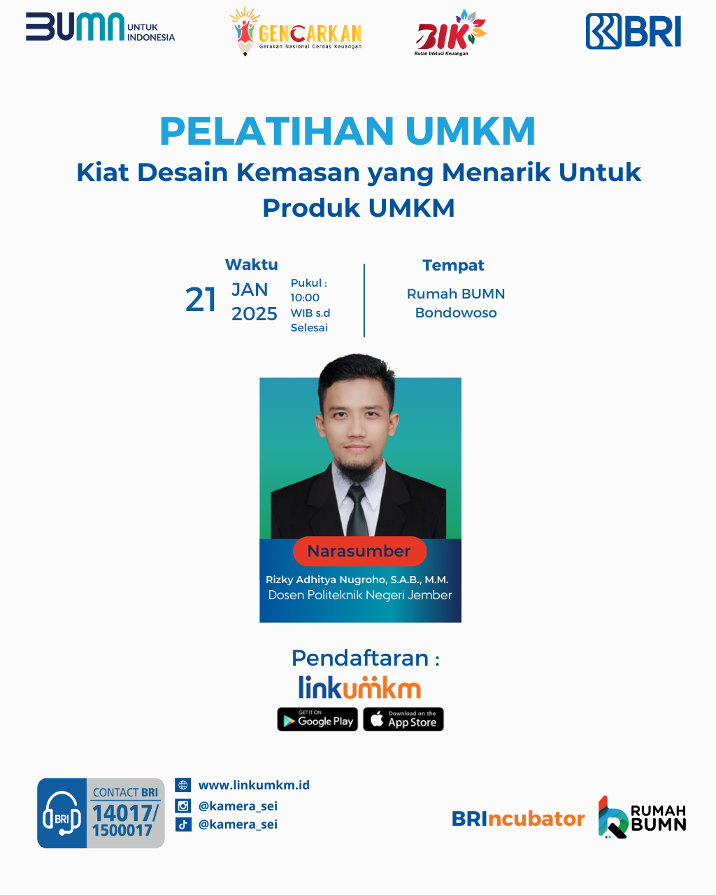 Judul Pelatihan : Kiat Desain Kemasan yang Menarik Untuk Produk UMKM