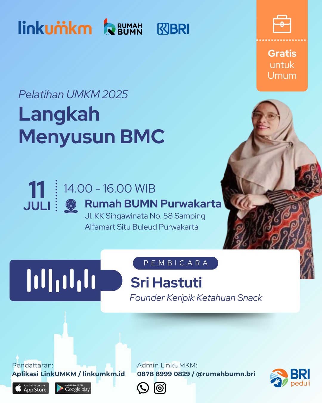 Sobat UMKM, Rumah BUMN Purwakarta mengadakan Pelatihan Secara OFFLINE.