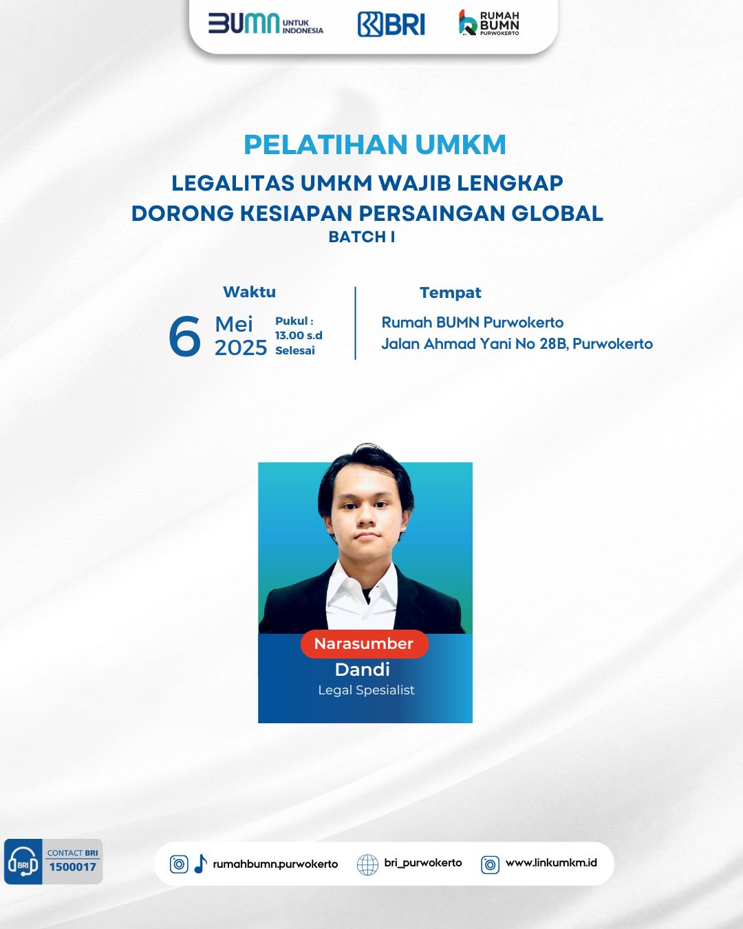 Judul Pelatihan : Legalitas UMKM Wajib Lengkap Dorong Kesiapan Persaingan Global Batch I